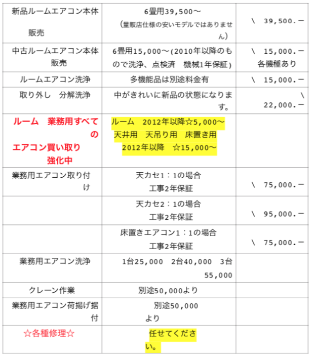 小牧市エアコン 春日井エアコン 名古屋エアコン 中古エアコン販売施工 エアコン洗浄 エアコン修理 大手ゼネコン工事 業務用エアコン 重量物運搬据え付け工事 中古エアコン工事2年保証付き ㈱山空設備へ!