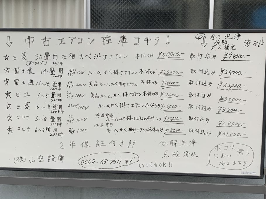 小牧市エアコン 春日井エアコン 名古屋エアコン 中古エアコン販売施工 エアコン洗浄 エアコン修理 大手ゼネコン工事 業務用エアコン 重量物運搬据え付け工事 中古エアコン工事2年保証付き ㈱山空設備へ!